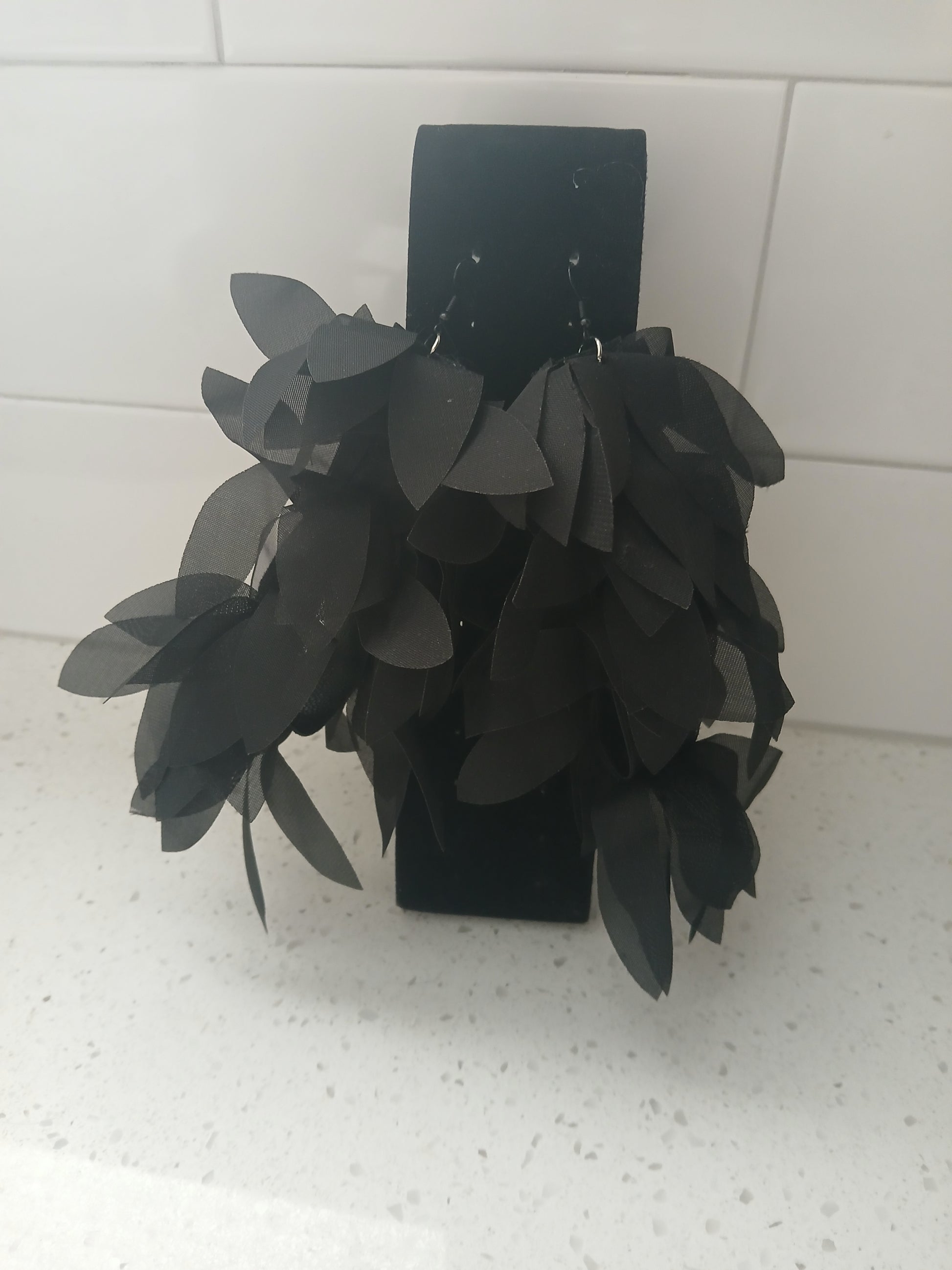 BLACK CHIFFON AND FAUX LEATHER EARRINGS