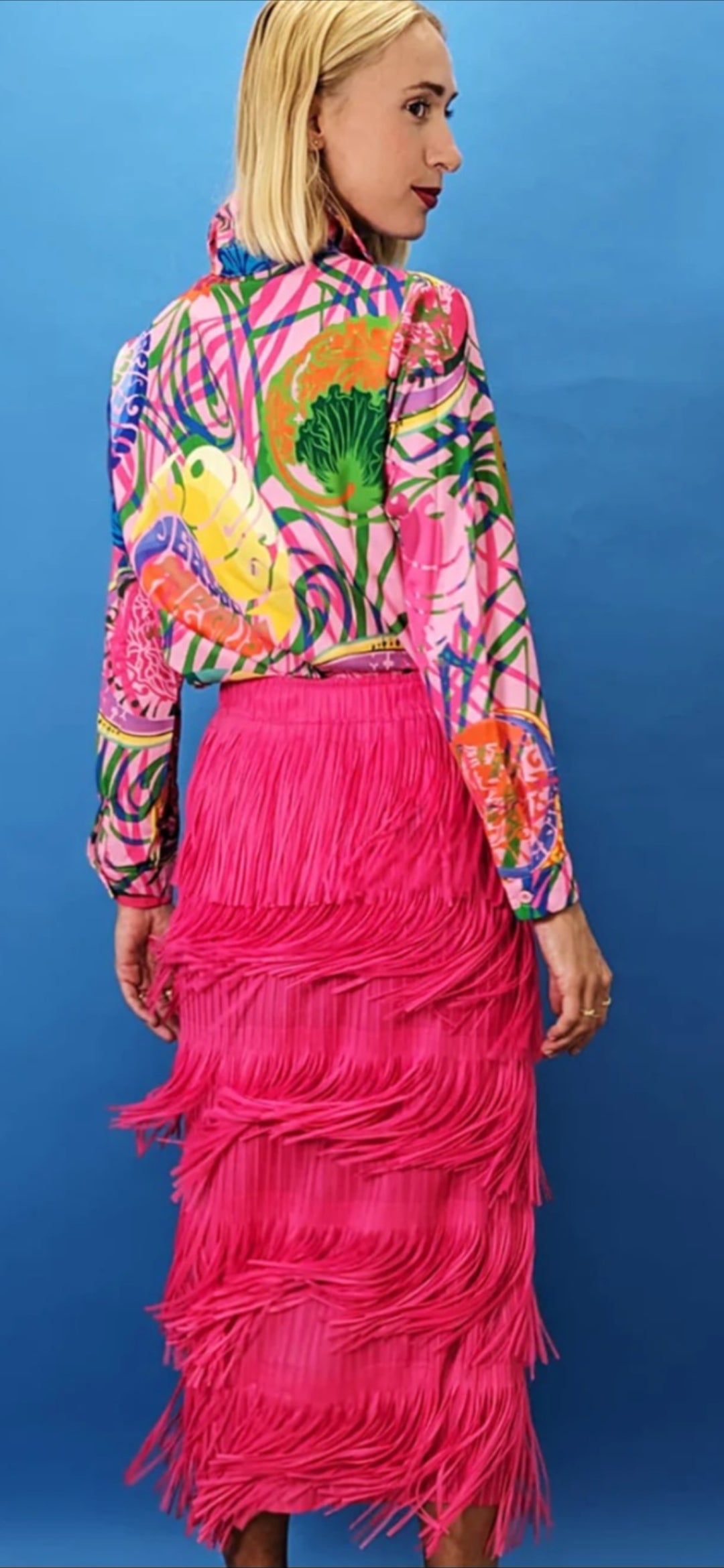 FRINGE PENCIL SKIRT WITH SIDE ZIP