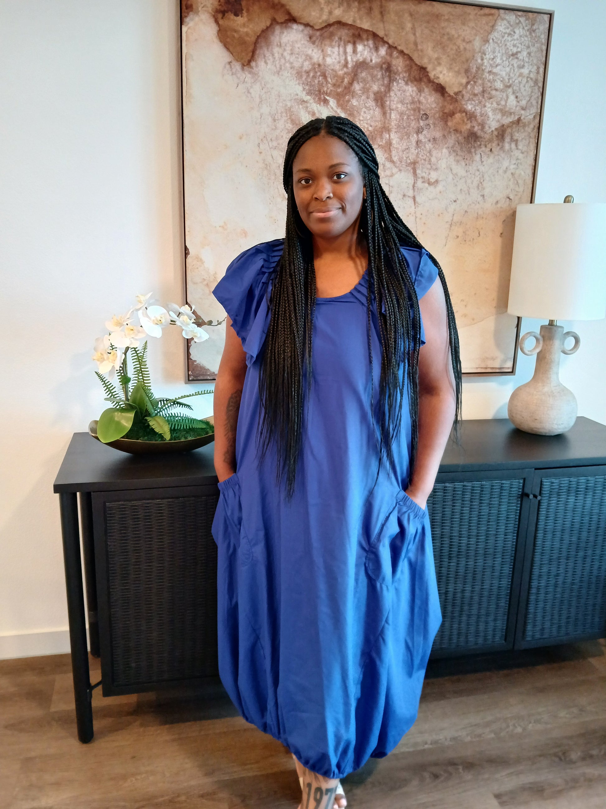 ROYAL BLUE SHORT SLEEVE COTTON BLEND MAXI DRESS